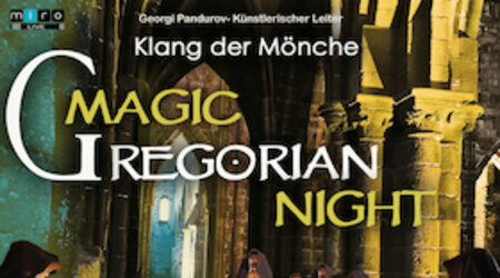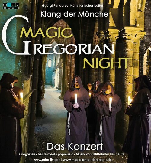Gregorianische Gesänge begeistern seit vielen Jahrhunderten die Menschen mit ihrer meditativen und zeitlosen Intensität. Unter der versierten Leitung des renommierten Opernsängers Georgi Pandurov, verkörpern die Sänger von MAGIC GREGORIAN NIGHT in traditionelle Mönchskutten gekleidet, dieses tiefgreifende Musikerlebnis mit ihrer großen Virtuosität. Fest in der Tradition der orthodoxen Kirchenmusik und der Gregorianik des Mittelalters verwurzelt, spannt das Ensemble ( Magic Gregorian Voices ) den Bogen über geistliche Lieder der Renaissance und des Barocks bis hin zu Klassikern der Popmusik wie z.B. das „Halleluja“ von Leonard Cohen, „The Sound of Silence“ von Simon & Garfunkel und „Amazing Grace“ von Andrew Lloyd Webber.
