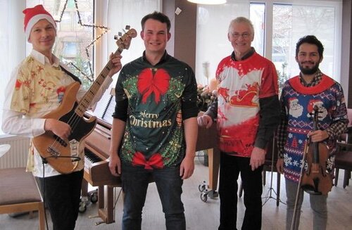 Das bekannte „Violin-Jazz-Quartett“ präsentiert weihnachtliche Songs jazzig arrangiert, wie z.B. Jingle Bells, Amazing Grace, Let it Snow, Sleigh Ride, aber auch O du Fröhliche und Morgen Kinder wird´s was geben – um nur einige zu nennen. Mit dem fantastischen Jazz-Geiger Hugo Luzuriaga, dem E-Bassisten Benjamin Wilms, dem Drummer Vincent Bockler und Werner Kirschbaum am Piano garantieren die vier professionellen Musiker ein einmaliges und seltenes Jazz-Spektakel, mit dezenter amüsanter Moderation zwischen den Stücken.