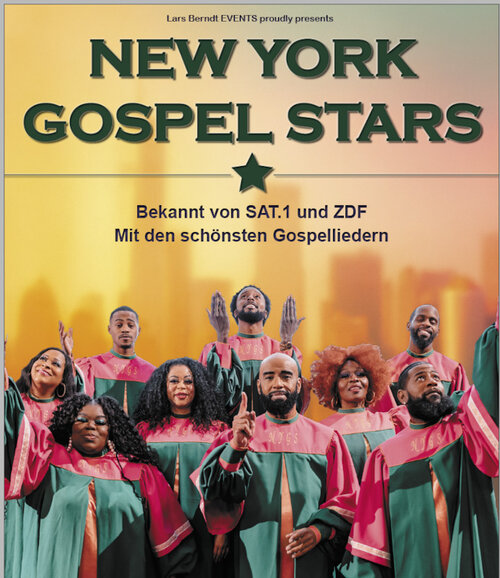 Seit fast zwei Jahrzehnten gastieren die New York Gospel Stars hierzulande und füllen Kirchen und Säle von Hamburg bis München. Ihre Auftritte sind mitreißende Erlebnisse: kraftvolle Stimmen, gefühlvolle Balladen und temperamentvolle Rhythmen schaffen eine Mischung aus Spiritualität, Show und purer Lebensfreude. Die Energie der Gruppe überträgt sich vom ersten Ton an auf das Publikum – und sorgt für Gänsehautmomente bis zum letzten Applaus.