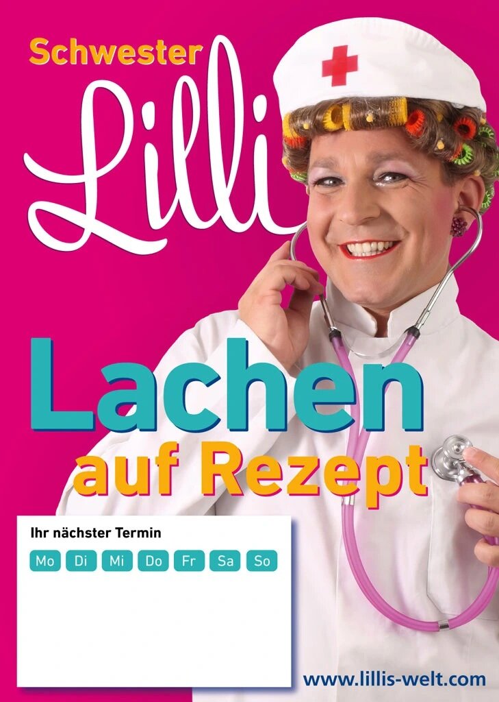 Wenn Lachen also gesund und außerdem noch ansteckend ist, dann hat Schwester Lilli die Medizin für uns alle. Angst vor dieser Spritze müssen Sie übrigens nicht haben – alle Witze werden verbal verabreicht, und zwar in einem Tempo, dass Sie aus dem Lachen nicht mehr herauskommen werden.